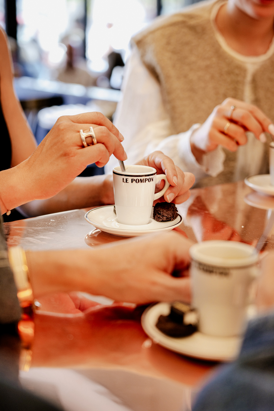 Sous un ciel tantôt bleu, tantôt gris, notre équipe a mis en scène l’atmosphère chaleureuse et généreuse du Pompon : des tables encore animées sur la terrasse, un verre de vin de vigneron indépendant à la main, des plats qui réchauffent les cœurs et des desserts qui jouent les stars de l’objectif.