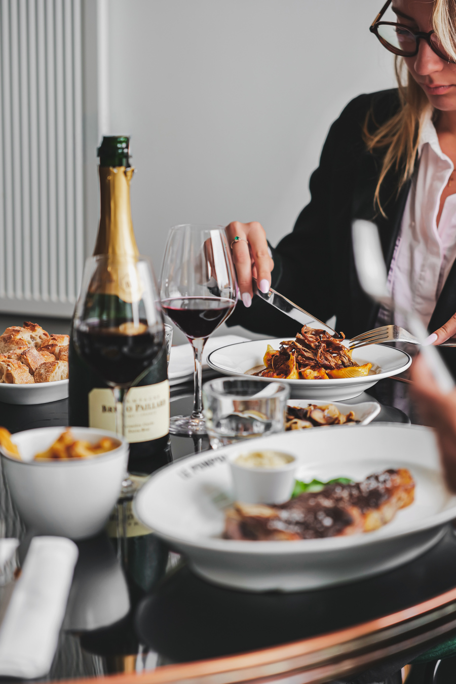 Les cuillères plongent dans les étages gourmands des desserts, les couteaux tracent leur chemin dans un L-bone maturé, pendant qu’un bourguignon fumant fait son show à la caméra. Le tout champignon, les Saint-Jacques, la côtelette de porcelet, ou encore les options végétariennes ; chou-fleur rôti et conchiglioni fondants, se succèdent devant l’objectif, dans une lumière naturelle et un grain automnal.